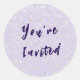 Add the finishing detail to your baby shower invitations with this festive “You’re Invited” envelope seal. Designed in a pale purple background with a playful glitter-snow effect, this round sticker blends effortlessly with the Baby Flurry collection. It’s both practical and stylish, giving your invitations a polished, professional look.