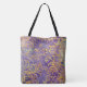 Large all-over-print brushed polyester tote bag with an image of purple, gold, and blue batik with a foliage pattern. See the entire Bali Retreat Tote Bag collection in the PARTY FAVORS section.