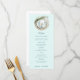 Showcase your beach reception menu with this beautiful surfboard formal dinner menu. This design has a watercolor image of a tropical beach place setting with Christmas decorations. Colours used include, slate blue, forest green, ivory and tan.
