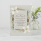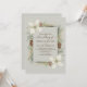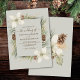 Winter pine cones and white flowers on a beige with elegant script wedding invitation.