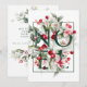 This botanical winter berries Christmas card has forest green and red floral letters that spell "NOEL" on the front. The back has a greeting that says "MAY THE MIRACLE OF CHRISTMAS FILL YOUR HEART WITH WONDER AND JOY." You can personalise with your family name(s) and change the greeting if you prefer.