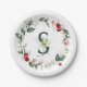 This set of 20 small 1.5" round monogram envelope seals feature a bright red and forest green winter berry wreath with a decorative sage green monogram initial.