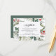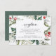 This delicate watercolor greenery border has traditional Christmas colours, forest green, olive green and cranberry red on bright white. The word "reception" is featured towards the top with the remaining wedding details directly below. All text can be edited to suit the needs of your event.