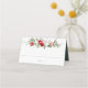This delicate watercolor greenery border has traditional Christmas colours, forest green, olive green and cranberry red on bright white. Below the berry branch is a line to write in a name and table number.