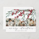 Winter Berry Script Christmas Three Photo Holiday Postcard