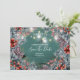 A beautiful illustration of pine needles infused with pine cones and red berries form a border around white calligraphy style templates which may be personalised to suit your special celebration. A strand of faux sparkling mason jar string lights appear to sparkle and shine and give a festive feel to the overall design. These are perfect for winter wonderland, festive season Christmas celebrations. The dark teal green and muted red and browns are suited to country and rustic gatherings too.