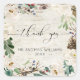 Winter Birch Calligraphy Floral Wedding Thank You Square Sticker