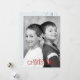 Red cardinal sitting in a winter birch tree on the back side of this card, with space to personalise. Photo placement on the front side.