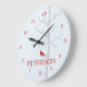 Winter Birch Tree Wall Clock. Red cardinal sits on a winter birch tree, Red numbers decorate this wall clock with blue background. Blue background can be edited. Personalise it.