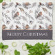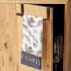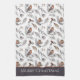 Here's a pretty kitchen towel for use during the Holiday Season. The pattern includes little winter birds in red and blue grey tones, holly leaves and berries, and is placed on a white background. At one end is a matching grey border with your custom text in white. Elegant and festive!