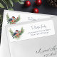 These winter themed Christmas holiday return address labels feature a watercolor bullfinch perched on evergreen sprigs, holly leaves, and red berries, with modern trendy handwriting script for the family name.