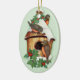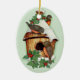Delightful winter wildlife scene with little birds, a snow covered birdhouse and holly. Delightful wildlife Christmas Ornament gift or keepsake.
