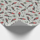 This festive nature holiday wrapping paper features fun pattern of hand-drawn red cardinal birds, pine, red holly berries and tiny stars, all against an elegant light sage green background.