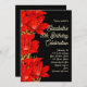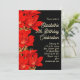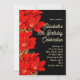 Black and red amaryllis flowers winter birthday party invitation. Beautiful red Amaryllis border on black paper with ecru text templates. Customise wording for a milestone birthday celebration for her. Choose a speciality paper, or choose the instant download option and share online. Reverse is solid black.