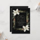Winter pine cones and white flowers on a black with elegant script wedding invitation.