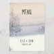 A Winter Blue and White Wedding Reception Menu Card created with a Winter Wonderland theme of snow falling in a forest. To personalise this Menu Card, simply insert the Bride & Groom's Names & Wedding Date, along with your Menu Selections details: Appetizer, Entre and Dessert, into our easy template, replacing the sample text.