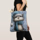 Winter Blue Christmas Cat With Hat And Scarf Tote Bag