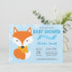 Winter Blue Fox Boy Baby Shower Invitationn. Boy Baby Shower Invitation. Winter Holiday Baby Shower Invite. Blue and White Snowflakes. Blue Chevron Background. For further customisation, please click the "Customise it" button and use our design tool to modify this template.