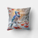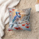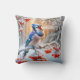 Winter Blue Jay Singing On a Red Berry Tree Cushion
