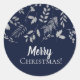 Winter Blue & Silver Leaves Botanical Holiday Classic Round Sticker