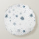 Winter Blue Silver Snowflakes Christmas Round Cushion