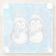 Winter Blue Watercolor Penguins Scarves Hats Glass Coaster