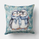 Winter Blue Watercolor Penguins With Scarves Cushion
