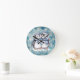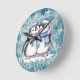 Winter Blue Watercolor Penguins With Scarves Round Clock