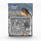Pretty little bluebird wintering over resting on a branch against a backdrop of snow frame personalised create your own photo block. Nature photography by Susan.