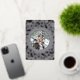 Subtle and elegant holiday photo cards feature a favourite photo in a unique round format, encircled by your custom holiday message (shown with "have yourself a merry little Christmas"), your names, and the year in white lettering. A hand drawn botanical wreath illustration surrounds your photo and text in shining rose gold foil. Add an additional photo to the back if desired.
