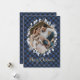 Winter Botanicals Blue Gold Plaid Photo Christmas Holiday Card