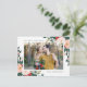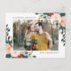Wish your family and friends a happy holiday with our festive Winter Botanicals holiday photo postcard. The holiday postcard displays your favourite photo on the front framed in white with bouquets of red and pink painted flowers with green leaves and gold accents. Personalise the front by adding a custom greeting and your name. The back features space for your return address and custom message.
