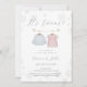 Celebrate both your little snowflakes with this winter twins baby shower invitation! Featuring a watercolor blue sweater and pink dress, this design captures the magic of the season in soft pastel tones. Perfect for twin boy and girl showers.