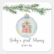 Winter branch with a toy. Watercolor baby shower invitation with Christmas pine branch with New Year's toy balls inside a gingerbread house. Matching items available.