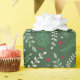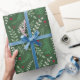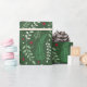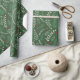 Celebrate the holidays by wrapping gifts in a festive holiday wrapping paper. The winter branches wrapping paper features a green background with light green pine branches, flourishes, leaves, and red berries.
