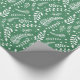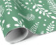 Celebrate the holidays by wrapping gifts in a festive holiday wrapping paper. The winter branches wrapping paper features a green background with white pine branches, flourishes, leaves, and berries.