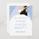 Winter Save the Date postcards with a bride and groom on a blue snowflake background. Easy to use template - just enter the names of the Bride & Groom, along with the wedding date in the space provided. Image © JD Digi Designs