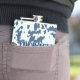 A white, blue and green, digital-style, winter camouflage pattern. Add your own text.