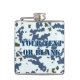 The flask itself is fine. It’s a cheap flask, obviously bought in bulk, however am prepared to overlook that. Given that it is a personalized item, I would have liked to have seen gift boxing instead of the generic packaging. Terrible printing, and/or quality. It’s a cheap, tacky vinyl. It is not cut straight and is also applied in a way that it is overhanging the bottom, causing the glue to catch on items and it will eventually roll and tear, damaging the wrap.
