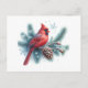 Winter Cardinal Pine and Snowflakes Postcard
