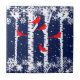 Bright red Cardinals in white Birch trees on a snowy Winter's night