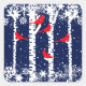 Bright red Cardinals in white Birch trees on a snowy Winter's night