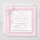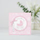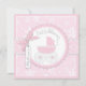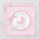 Sweet baby carriage and 3D-look bow and ribbon with snowflake print for a girl baby shower invitation card.