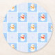 Winter chequered pattern snowman and snowflakes round paper coaster