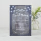 Rustic wonderland country style bridal shower party stylish invitation template on dark midnight navy blue barn wood background featuring a big mason jar with reindeer, pine trees and strings of white twinkle lights. +++++++++++ Personalise with your details! You can choose to customise it further changing fonts and colours of lettering. +++++++++++ The invitation is suitable for winter wonderland night / mountains / rustic country bridal showers / brunch /luncheon parties.