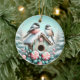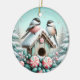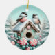 Bring the magic of winter to your holiday décor with this delightful ornament featuring two fluffy chickadees perched on a snow-covered birdhouse, surrounded by festive peppermint candies and frosted greenery. The serene snowy backdrop and pastel hues create a whimsical and cosy vibe, perfect for nature enthusiasts and bird lovers alike. Whether adorning your Christmas tree or given as a thoughtful gift, this ornament celebrates the peaceful beauty of winter with a touch of holiday cheer.