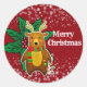 Christmas Bear in Red fun round holly sticker featuring snowflakes for fun Christmas party. Funky Merry Christmas sticker for party labels and crafts. Make the Christmas party fun and frolic with distribution of sticker gifts to kids. Customise text is available to fit in your Font Style.