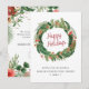This beautiful holiday corporate business card features beautiful watercolor red flowers with holly berries, pinecones, and greenery arranged as a chic wreath with 'Happy Holidays' in an elegant handwritten calligraphy script. The back contains matching artwork with a message and a business logo for personalising. Find matching items in the Holiday Red Winter Botanical Christmas Collection.