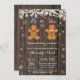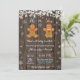 Winter Christmas Gender Reveal Invitation. White Snowflake. He or She. Boy or Girl. Pink and Blue. Christmas Holiday Gingerbread Man. Rustic Wood Background. Country Vintage Retro Barn. For further customisation, please click the "Customise it" button and use our design tool to modify this template.