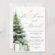 This Christmas, winter wedding invitation embodies chic elegance with its enchanting watercolor design, featuring a majestic pine tree with white snow accents, painted in modern watercolor, with a couple of presents underneath to suggest Christmas, as well as modern calligraphy for the title "Tis the Season to be Married" with a faux gold effect (this is a digital effect, not real foil!). Perfect for couples who love art and unique designs, elegant country rustic, bohemian, and romantic themes, this invitation is an ideal choice for Christmas wedding invitations. Explore our collection of Christmas themed invitations, offering a variety of Christmas wedding invites invitation ideas to inspire your celebration. From Christmas themed wedding invitations to elegant Christmas wedding invitations, our designs are perfect for December wedding invitations. Make your special day unforgettable with our winter wedding invites and Christmas wedding card options, each designed to bring the magic of the season to your elegant Christmas wedding.